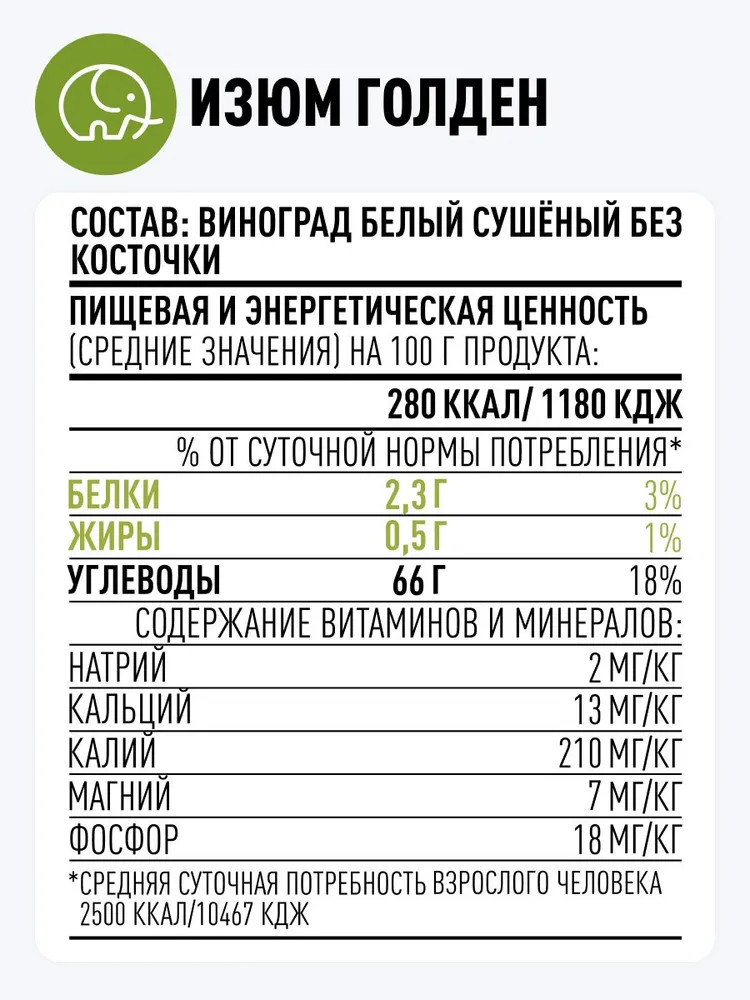 Зеленый слон Изюм золотой без косточек «Голден»