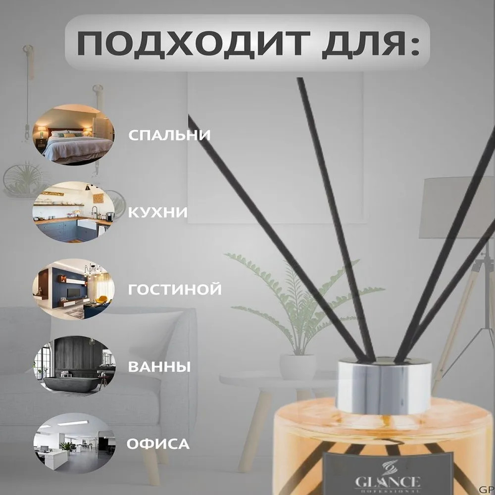 Парфюм для дома и офиса создаст приятную атмосферу и освежит любое помещение. Ароматизатор для дома Glance Professional — это уникальный интерьерный парфюм, состоящий из натуральных масел. Диффузор гармонично дополнит Ваш интерьер, создаст приятную ароматическую атмосферу. Диффузор Glance Professional раскрывает свою парфюмерную композицию постепенно, интенсивность зависит от количества ароматизированных палочек, размещенных в баночке. Брендовый диффузор компактной формы подойдет для любого интерьера: квартиры-студии или дома. Ароматизатор идеален для гостиницы или отеля, отлично подойдет для салона красоты. Диффузор используется не только для наполнения помещения приятным ароматом, но и для украшения.