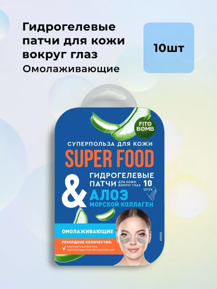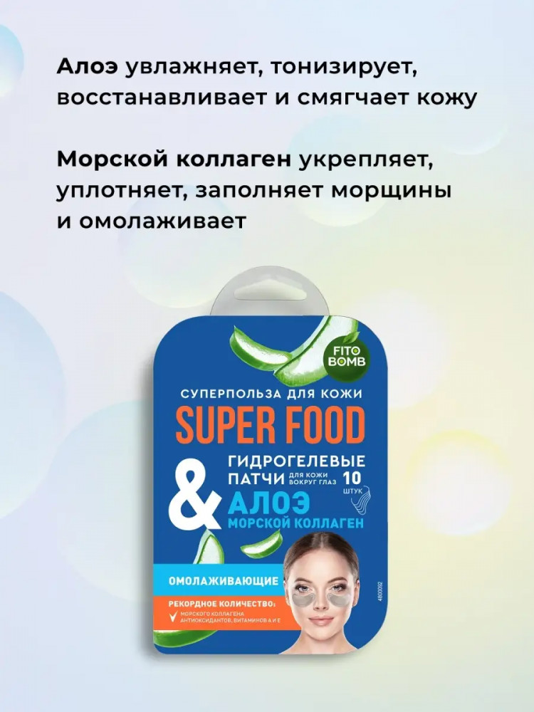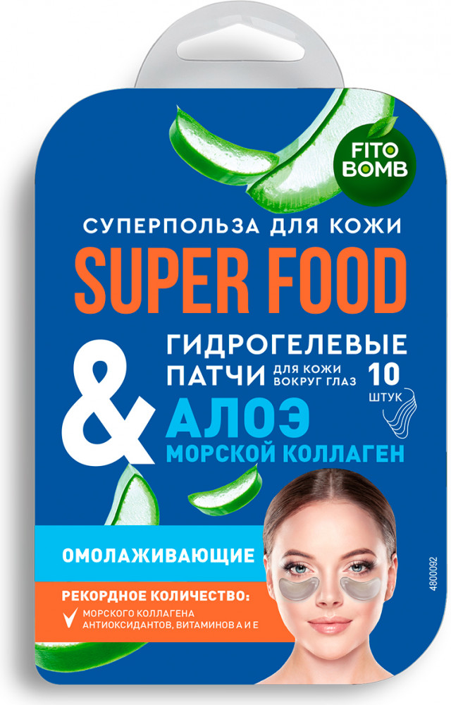 Фитокосметик Патчи гидрогелевые для кожи вокруг глаз «Алоэ & морской коллаген»