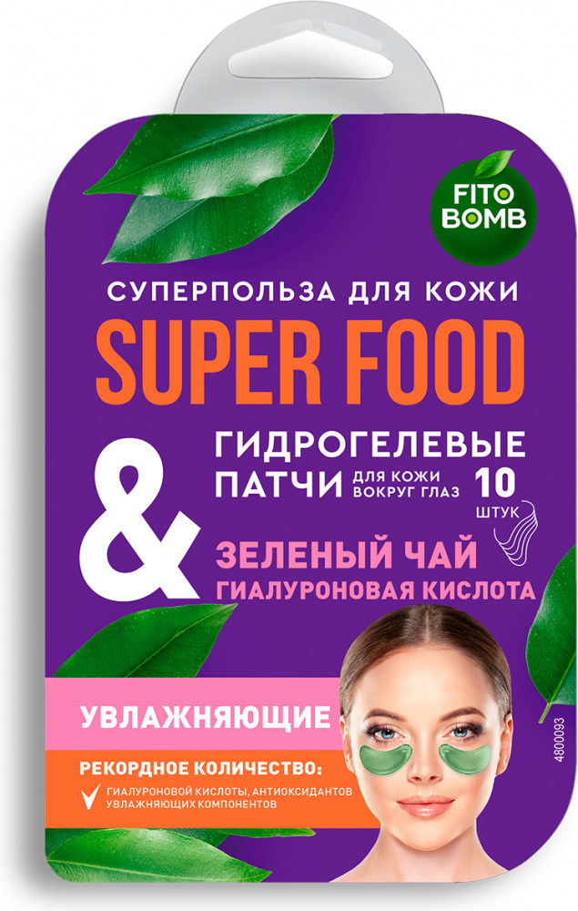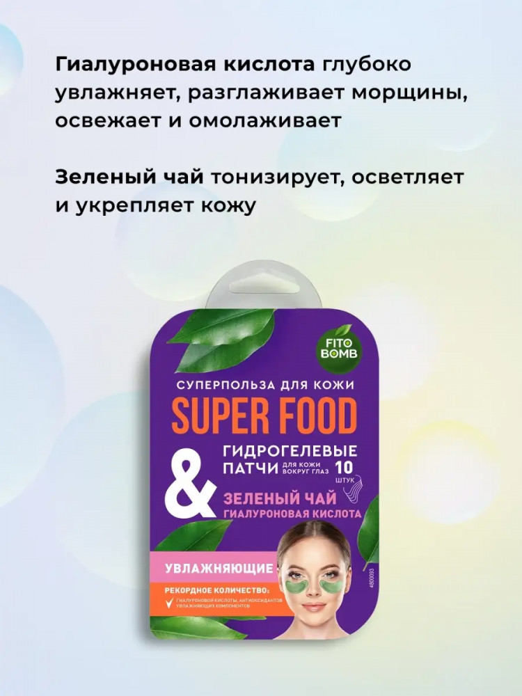 Фитокосметик Патчи гидрогелевые для кожи вокруг глаз увлажняющие «Зеленый чай & гиалуроновая кислота»