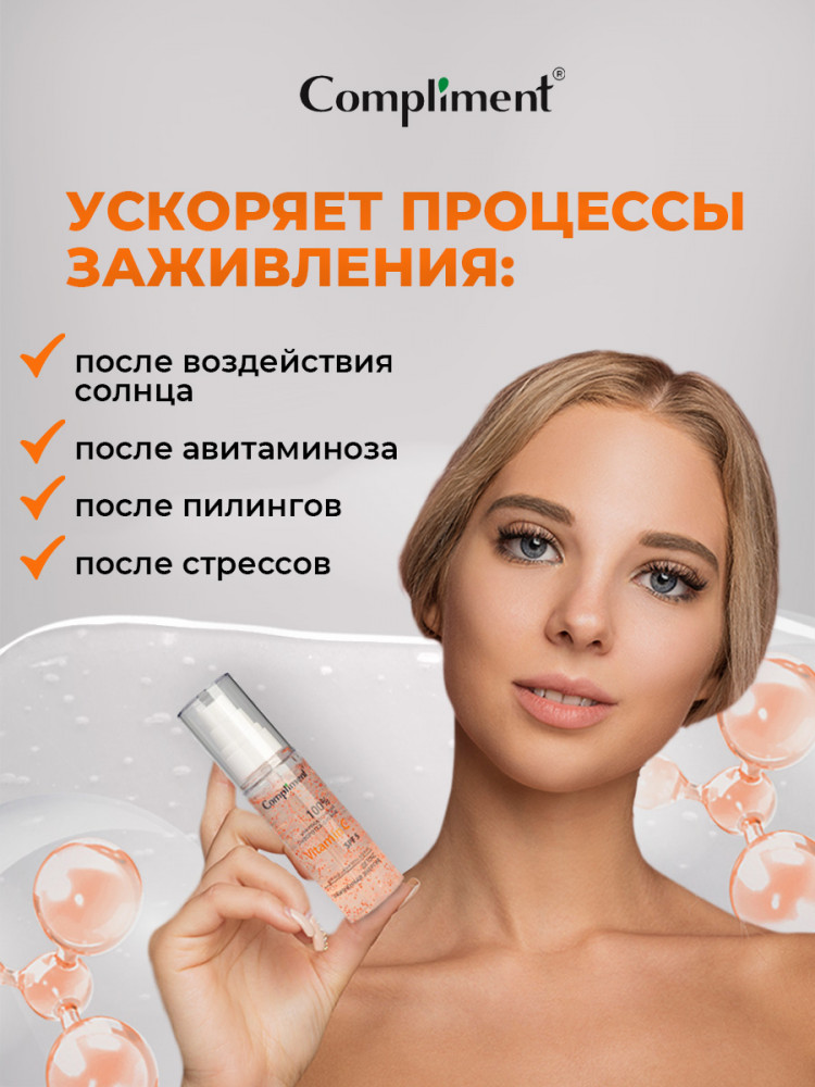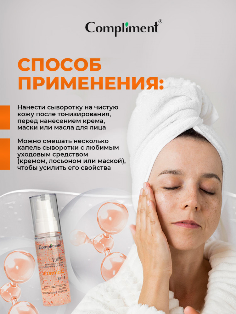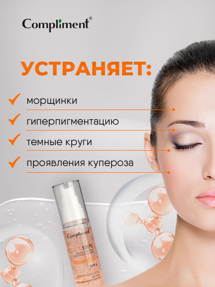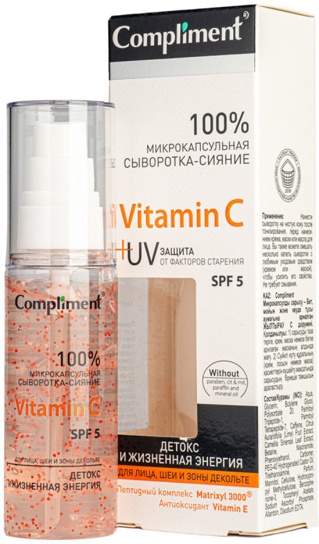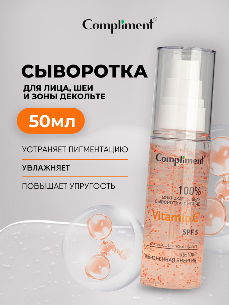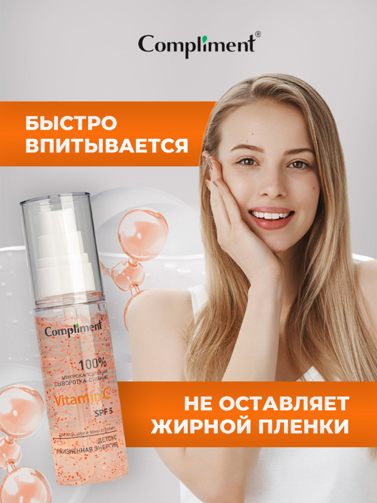 Compliment Сыворотка-сияние для лица, шеи и декольте с микрокапсулами «Vitamin C SPF 5»