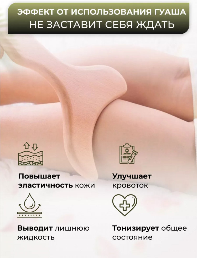 • антицеллюлитный эффект: регулярное использование гуаша способствует улучшению микроциркуляции и обмена веществ в тканях, что помогает в борьбе с целлюлитом;