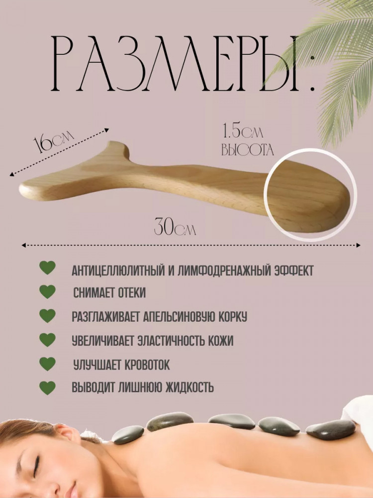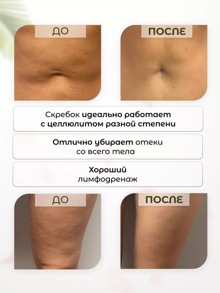 • универсальность: скребок подходит для массажа различных частей тела, включая шею, спину и ноги.