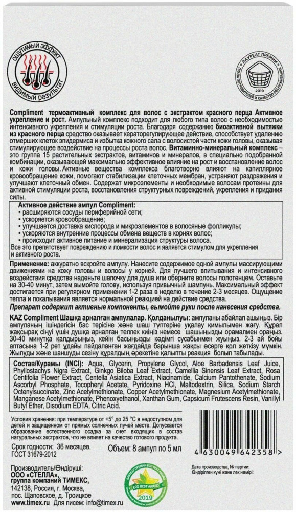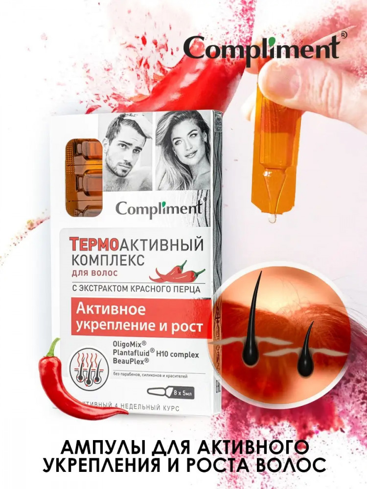 Compliment Комплекс термоактивный для волос с экстрактом красного перца «Активное укрепление и рост»