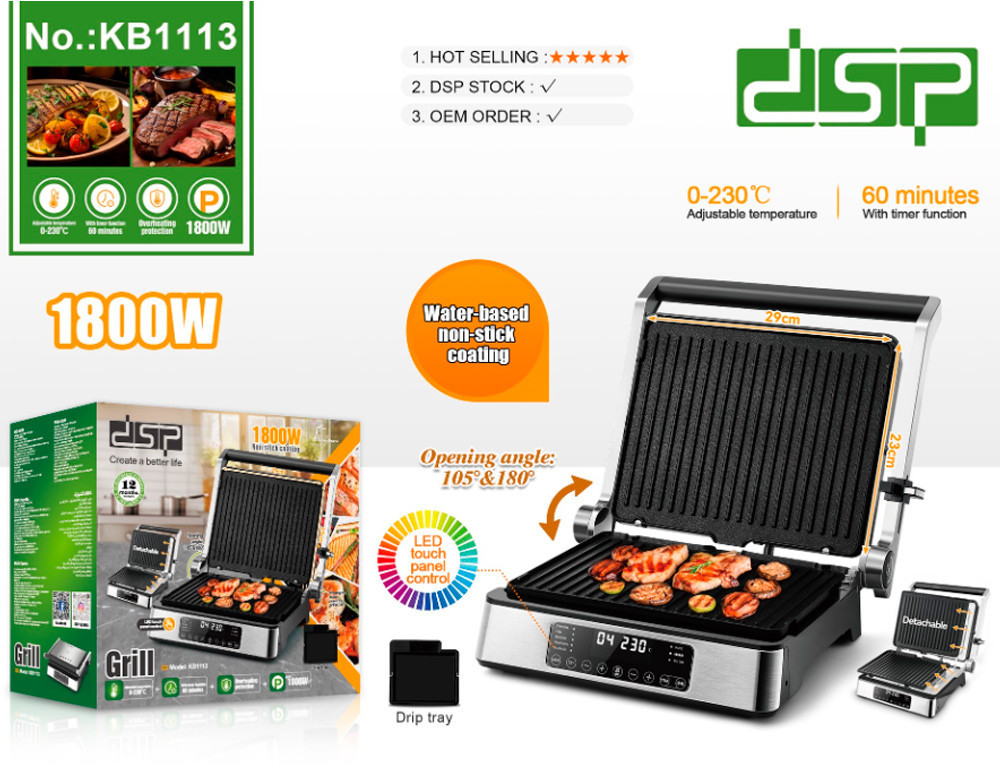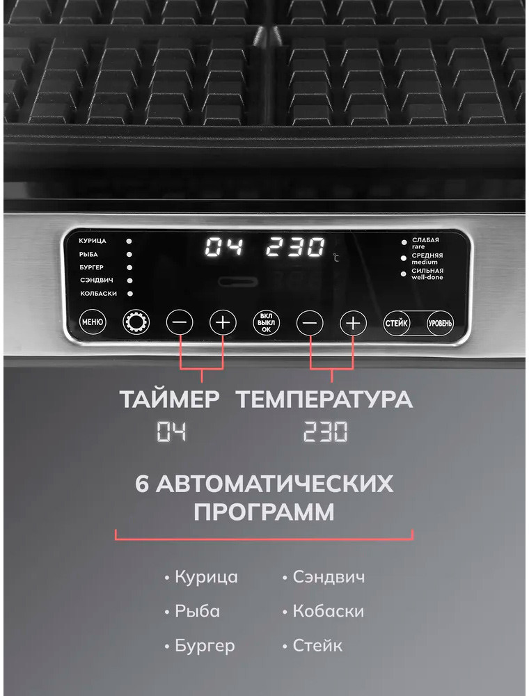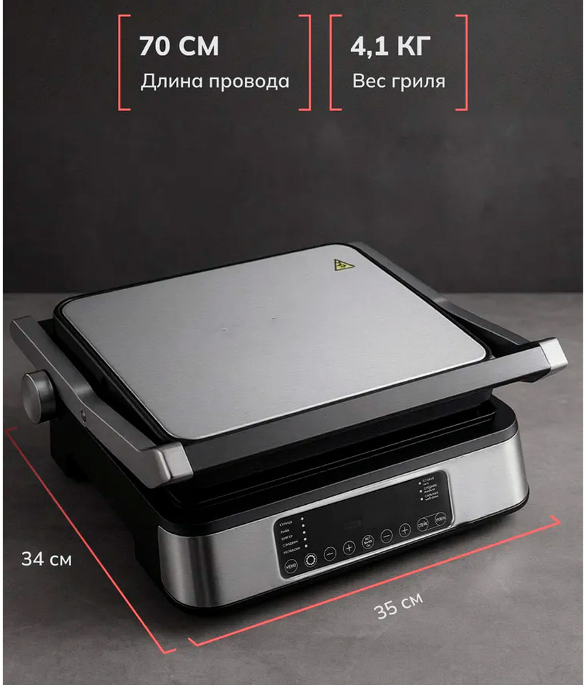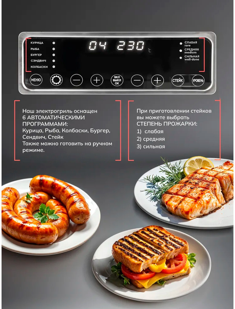 💳 Оплатить за товар можно при получении 🇰🇿 Есть бесплатная доставка по Казахстану от 1 дня 🎁 Копите бонусы с каждой покупки Электрический гриль мощностью 1800 Вт предназначен для жарки сочных мясных, овощных, рыбных блюд, шаурмы. Антипригарное покрытие рабочих пластин и поддон для сбора масла не дает продуктам пригореть и упрощает мытье после готовки. Рабочие поверхности автоматически регулируются по высоте. Отделка корпуса выполнена из высококачественной нержавеющей стали. Ручка в процессе готовки не нагревается. Нескользящие и устойчивые ножки для комфортного и безопасного использования. Грильница — не просто кухонная бытовая техника, это произведение искусства для настоящих гурманов, приготавливающих шедевры прямо у себя дома. Электрогриль станет отличным подарком женщине , маме , любимой на Новый год , день рождения , юбилей. Также придется по душе любому мужчине для приготовления восхитительных стейков и других блюд прямо в уюте своей кухни. |