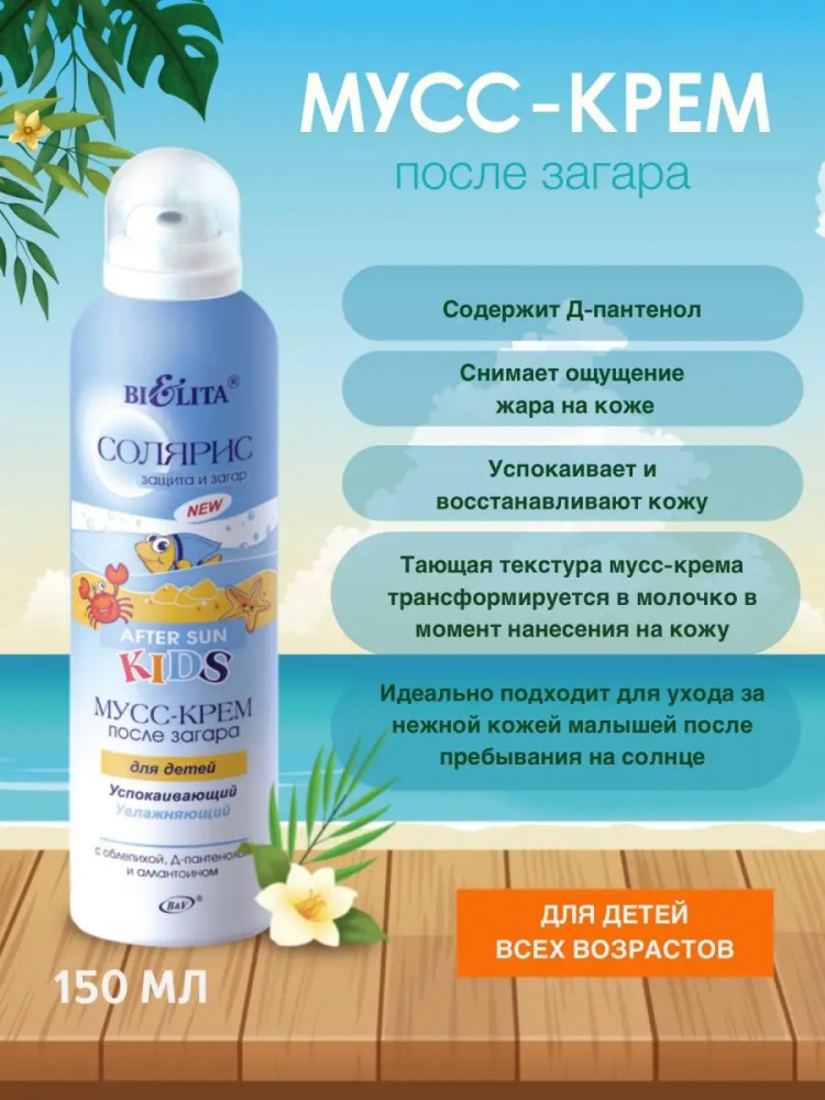 Bielita Мусс-крем после загара для детей успокаивающий, увлажняющий «Kids»
