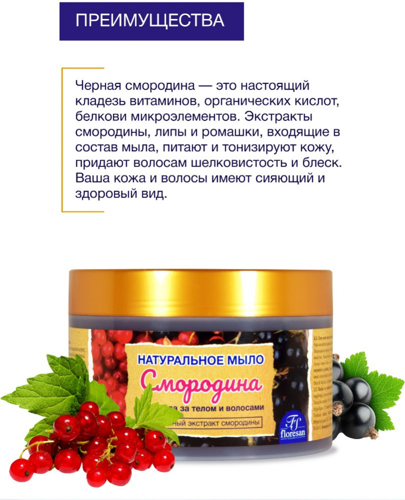 Floresan Мыло для ухода за телом и волосами с натуральным экстрактом смородины «Смородина»