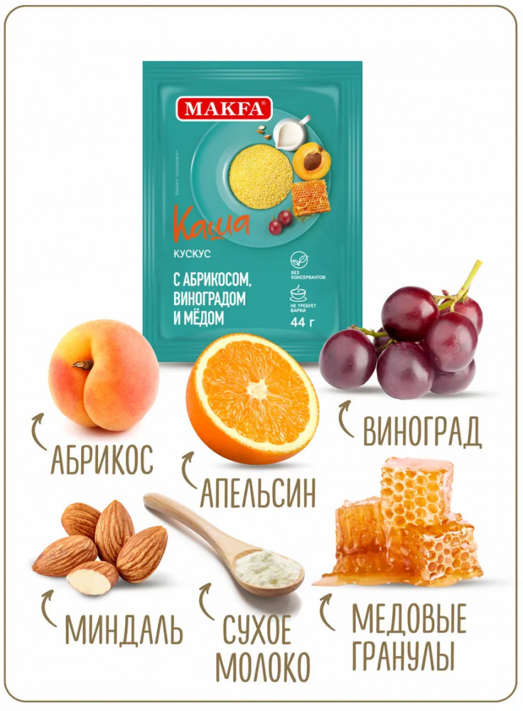 Makfa Кускус из твердой пшеницы с абрикосом, виноградом и медом