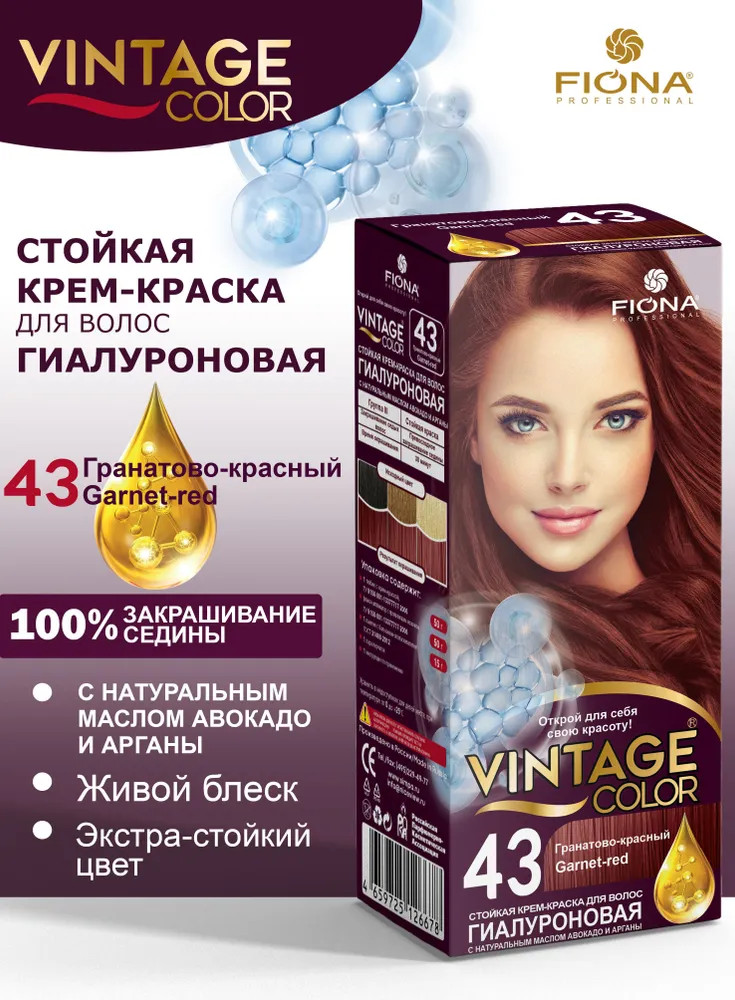 Fiona Крем-краска для волос «Vintage Color», оттенок 43 Гранатово-красный