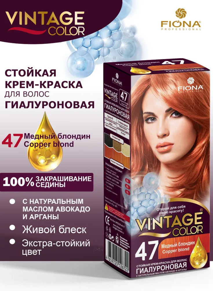 • благодаря кремообразной текстуре краска для волос Винтаж проста в применении и не стекает во время окрашивания, хорошо распределяется по всей длине волос.