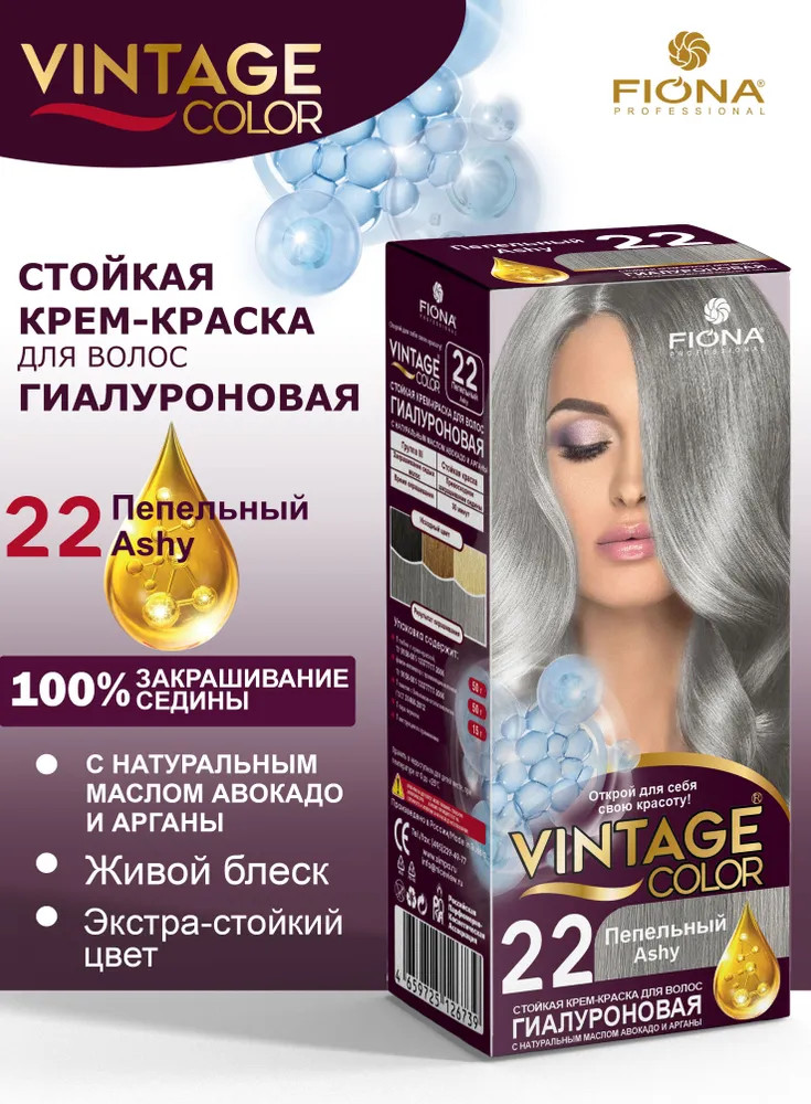 Крем-краска для волос «Vintage Color», оттенок 22 Пепельный | Fiona