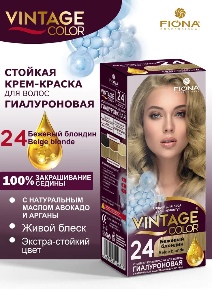 Fiona Крем-краска для волос «Vintage Color», оттенок 24 Бежевый блондин