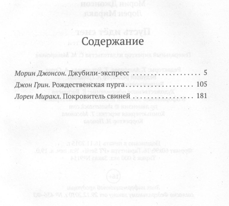 Пусть идет снегВ данный момент этот товар отсутствует в продаже. Возможно, у нас найдется аналогичный или похожий товар здесь. Неожиданный снежный буран в канун Рождества застает жителей Грейстауна врасплох: поезда останавливаются, машины вязнут в снегу, а люди стараются переждать непогоду дома. И лишь храбрая девушка выбирается из застрявшего в снегу экспресса, чтобы посидеть в тишине маленькой закусочной, где выпекают вафли. Она и не догадывается, что ее поступок стал первым звеном в цепи событий, которые изменят многие жизни: одна девушка влюбится в очаровательного незнакомца, трое друзей выиграют гонку в «Вафельную», а судьба карликовой свиньи окажется в руках влюбленного баристы. |