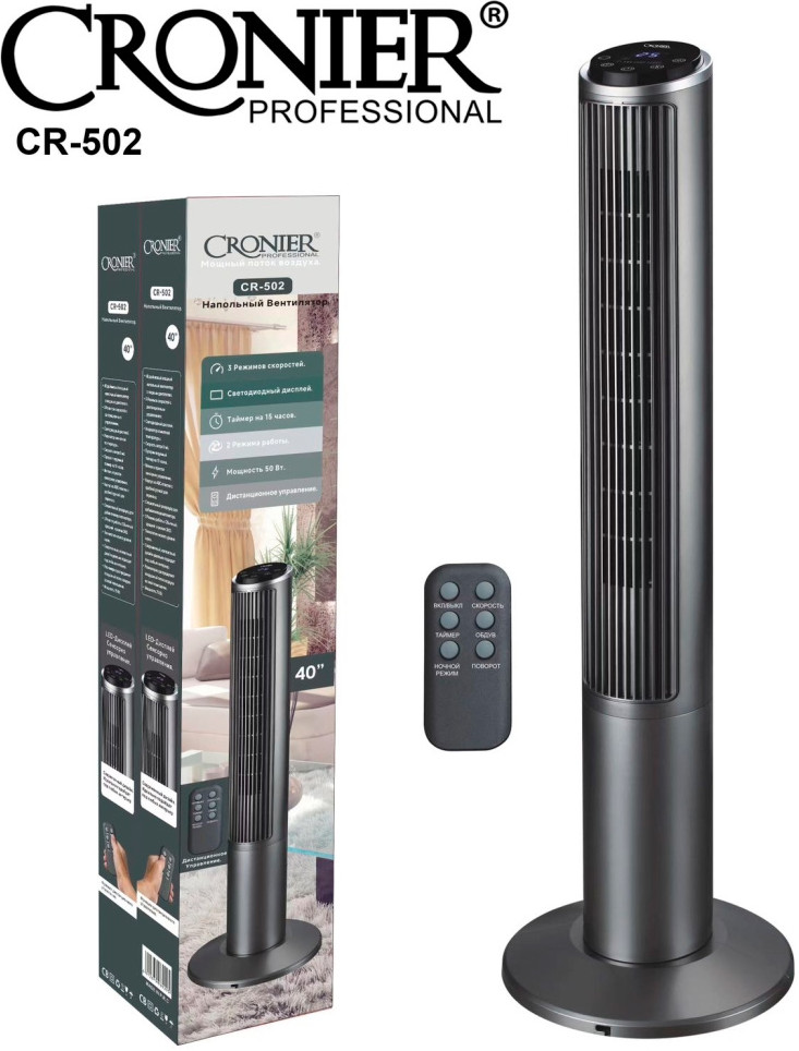 Cronier Вентилятор напольный CR-502В данный момент этот товар отсутствует в продаже. Возможно, у нас найдется аналогичный или похожий товар здесь. Напольный вентилятор — это эффективное устройство, созданное для того, чтобы обеспечивать вам комфорт и свежесть в любое время года. Переносной, компактный охладитель воздуха , который охлаждает воздух вокруг вас где бы вы ни находились. Вентилятор колонного типа с механическим управлением и мотором мощностью 50 Ватт создает приятный поток охлаждающего воздуха. Низкий уровень шума и 3 скорости работы обеспечивают скорейшее достижение комфортных условий в душном помещении. Вентилятор может работать как в фиксированном положении, так и с поворотом корпуса, что существенно увеличит площадь обдува. Встроенный таймер позволит настроить автоматическое выключение вентилятора через заданное время вплоть до 15 часов. Постоянная циркуляция воздуха в комнате, либо офисе дарит ощущение свежести, способствует лучшему тонусу и отличному настроению в течение всего дня, а ночью — крепкому сну и быстрому восстановлению сил. Надежные компоненты вентилятора и простое механическое управление обеспечат долгий срок службы без каких-либо проблем. В итоге, напольный вентилятор — это универсальное устройство, которое станет незаменимым помощником в охлаждении и очистке воздуха в вашем доме или офисе. Легкий, компактный, мощный и бесшумный, он обеспечивает вам комфорт и свежесть в любое время года и в любом месте. Длина провода 1.75 м. |