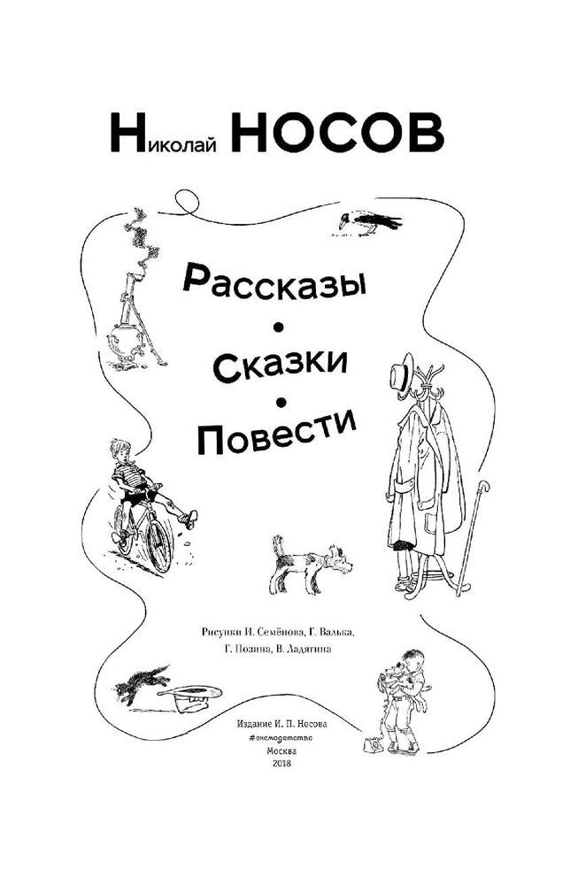 Заказывала сразу 2 экземпляра на подарки детям 9 и 10 лет. Первоначально были опасения, что каких-нибудь любимых рассказов Носова там не будет, но опасения напрасны - там все известные рассказы и повести (кроме серии про Незнайку, которая идет отдельной книгой). Качество книги нормальное, отличный переплет, черно-белые, советские картинки, что совсем не в ущерб книги. Шрифт удобочитаемый. Цена очень приемлемая (особенно по сравнению с другими изданиями). Покупкой довольны. Дети читают с удовольствием, смеются.