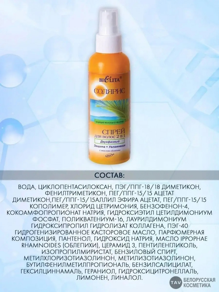 Bielita Спрей двухфазный для волос «Защита+увлажнение»В данный момент этот товар отсутствует в продаже. Возможно, у нас найдется аналогичный или похожий товар здесь. Серия: Солярис Обеспечивает необходимую защиту волос от летних стрессов — морской и хлорированной воды, солнечных лучей. Средство образует на волосах невидимую солнцезащитную пленку, поддерживающую необходимый уровень увлажнения. |