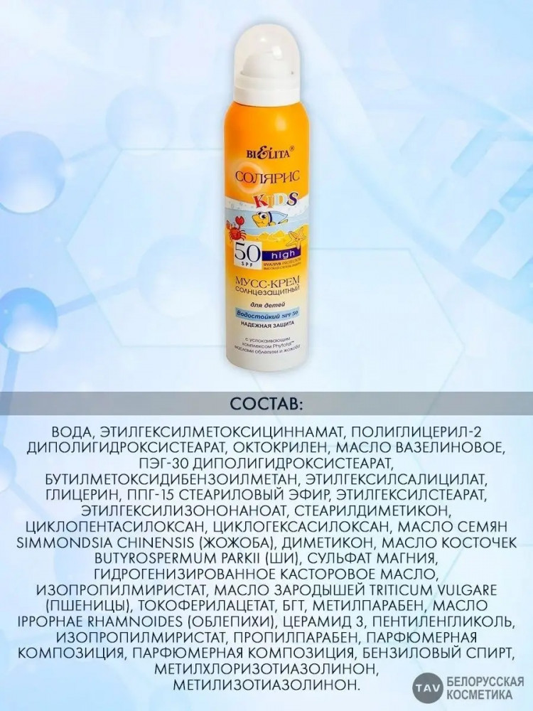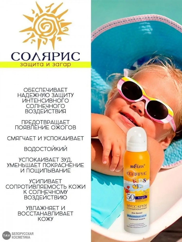 Bielita Крем-мусс солнцезащитный для детей «Надежная защита» SPF 50В данный момент этот товар отсутствует в продаже. Возможно, у нас найдется аналогичный или похожий товар здесь. Серия: Солярис Мусс-крем с высоким уровнем SPF обеспечивает надежную защиту нежной детской кожи от интенсивного солнечного воздействия, предотвращая появление ожогов. Смягчает и успокаивает чувствительную детскую кожу. Обладает водостойким действием, что позволяет спокойно играть у воды. Легко наносится на кожу ребенка благодаря воздушной текстуре. |
