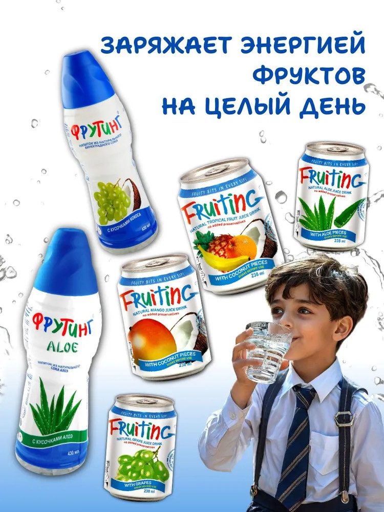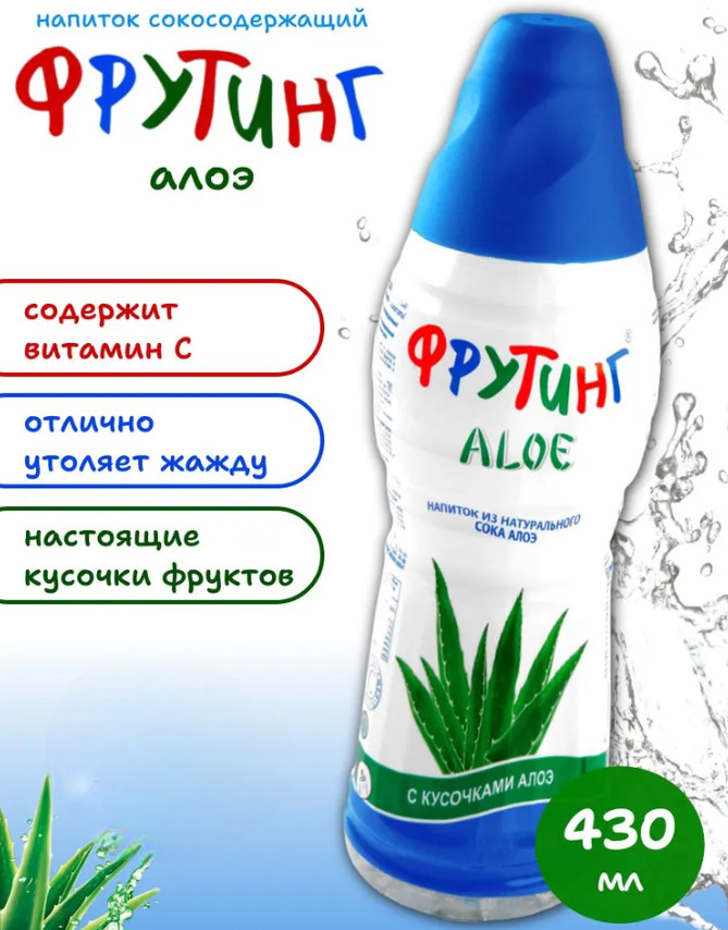 Fruiting, Natural Aloe Juice Drink — натуральный сокосодержащий напиток, который приготовлен из алоэ. Он обладает приятным вкусом, отлично тонизирует и освежает. Согласно рецептуре в напитке содержится не менее 10% натурального сока и 8% кусочков алоэ. Кроме того, в его состав входят исключительно натуральные компоненты. Напиток подходит для употребления в течение всего дня. Также на его основе можно готовить коктейли.