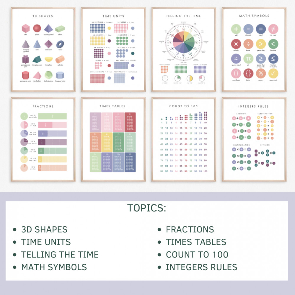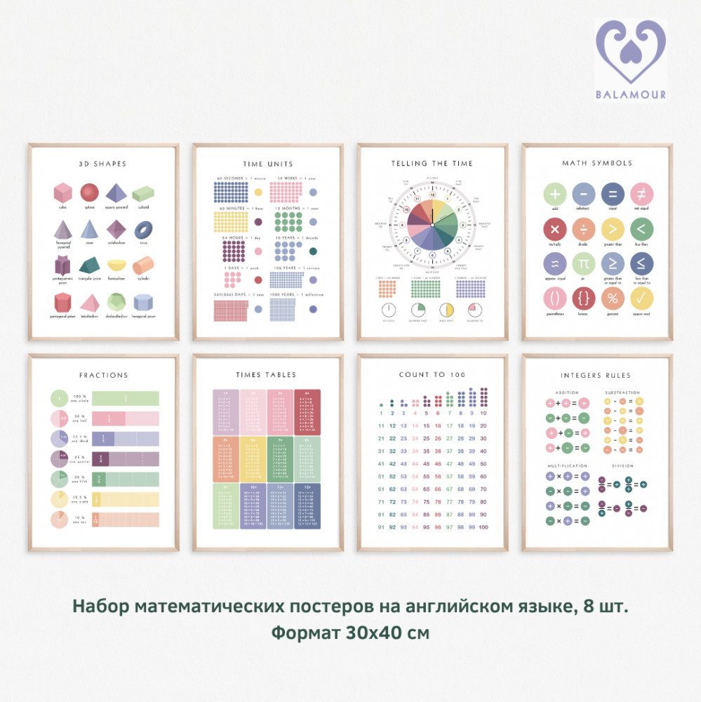 BALAMOUR Обучающие постеры по математике для детей на английском языке+125