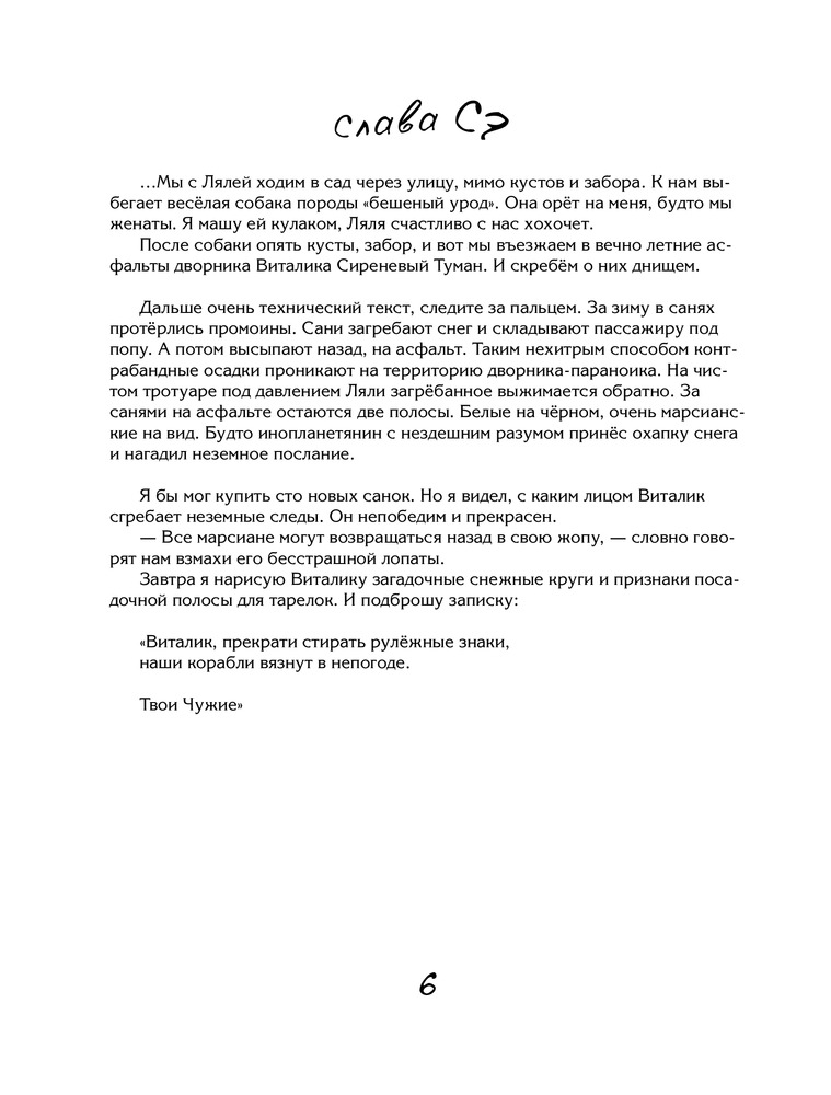 Книга чудесная! В ней столько юмора!!!! Отлично поднимает настроение и дарит море положительных эмоций!!!! Я уже давно так от души не смеялась! Прочитала все книги Славы Сэ. Теперь с нетерпением жду новых! Качество книги прекрасное, всё высшего сорта: бумага, печать, обложка!