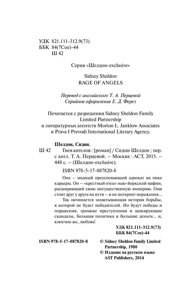 Как и все книги Шелдона, захватывающая книга. Но после прочтения было так тяжело и так грустно на душе, также становится ясным смысл загадочного названия. Роман местами напоминал произведение "Крестный отец".