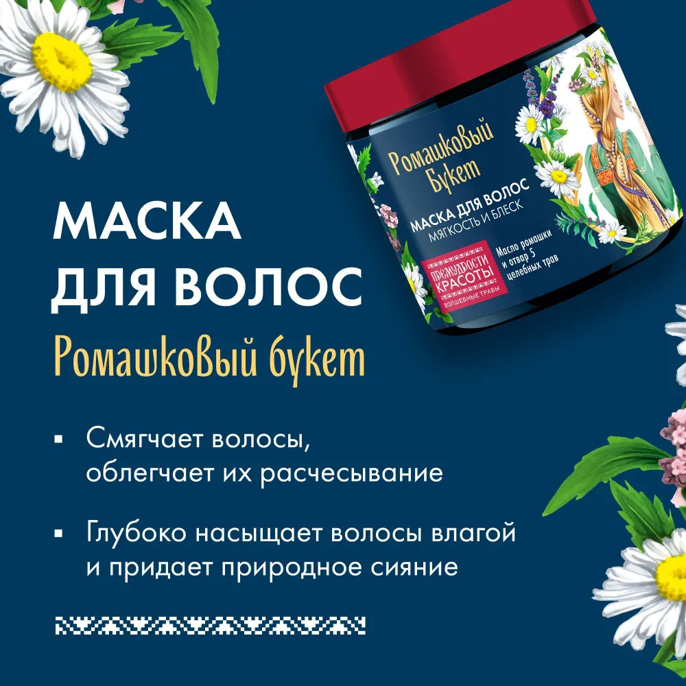 Фитокосметик Маска для волос «Мягкость и блеск. Ромашковый букет»