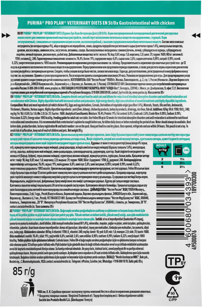 Purina Pro Plan Корм влажный для котят и взрослых кошек при расстройствах пищеварения «Кусочки в подливке с курицей»