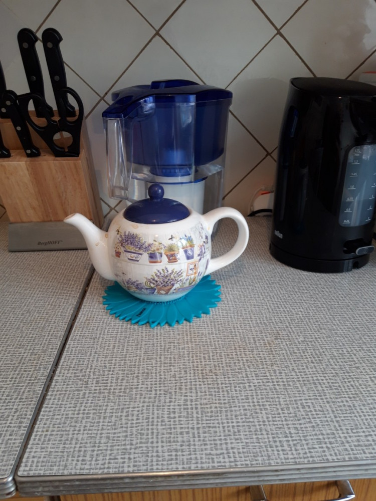 Хорошая подставка. Специально взяла под электрочайник, т.к. всегда чайник у меня на подставке. Была пластмассовая, но вся уже раскололась от времени. Теперь он не скользит, когда снимаешь с нагревательного элемента. Спасибо, что доставили именно сиреневого цвета. Еще бы взяла такую, если бы размер был больше.