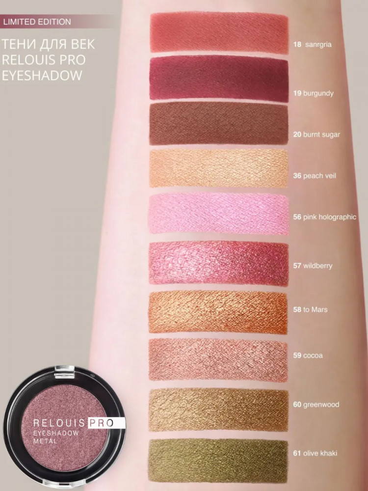 RELOUIS Тени для век «Eyeshadow Metal», оттенок 57 Wildberry