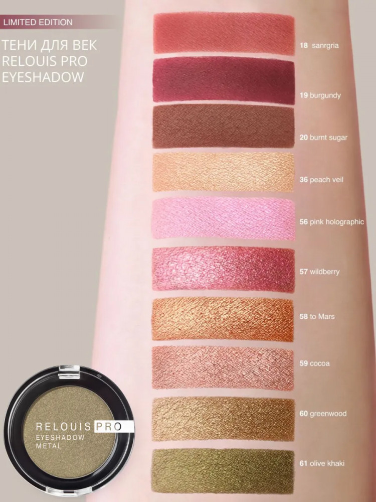 RELOUIS Тени для век «Eyeshadow Metal», оттенок 61 Olive Khaki