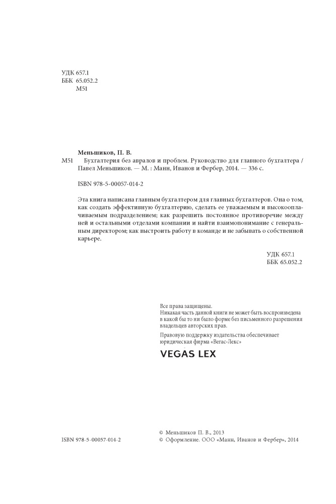 Бухгалтерия без авралов и проблем. Руководство для главного бухгалтераВ данный момент этот товар отсутствует в продаже. Возможно, у нас найдется аналогичный или похожий товар здесь. Эта книга написана главным бухгалтером для главных бухгалтеров. Она о том, как создать эффективную бухгалтерию, сделать ее уважаемым и высокооплачиваемым подразделением; как разрешить постоянное противоречие между ней и остальными отделами компании и найти взаимопонимание с генеральным директором; как выстроить работу в команде и не забывать о собственной карьере. |