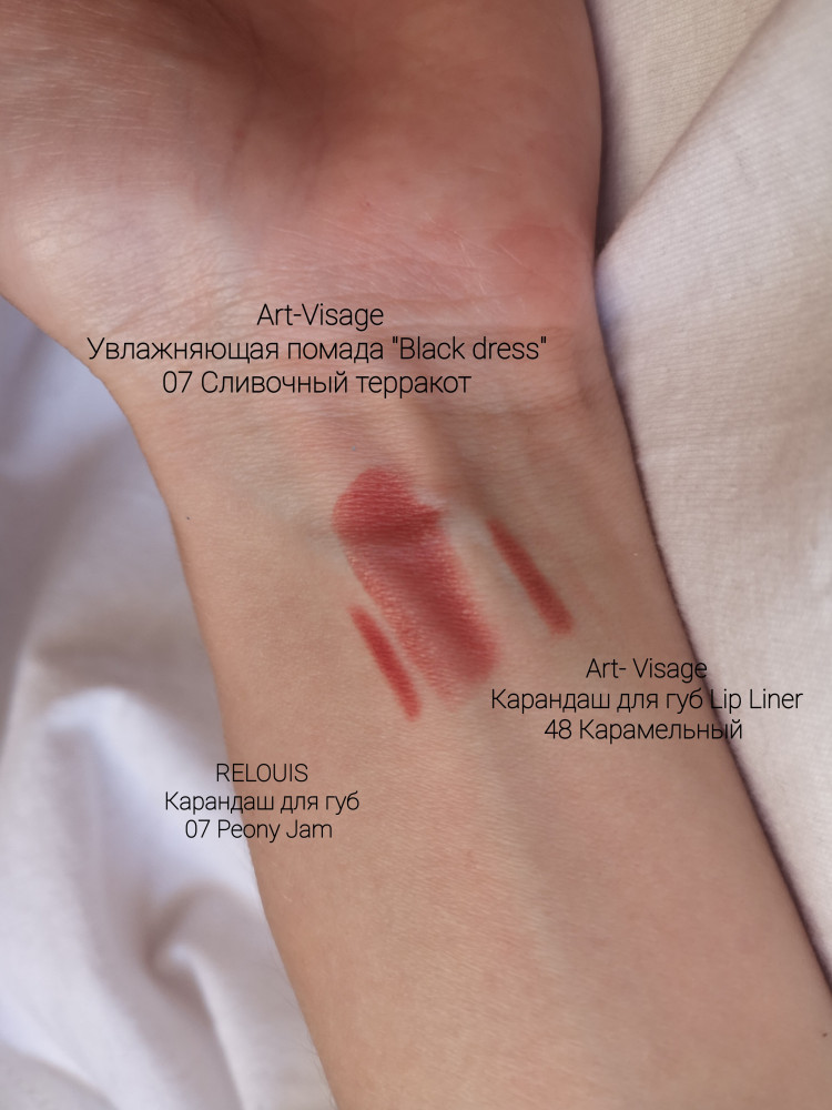 На фото похожий оттенок от Art-Visage и помада-компаньон, которые я попробовала.