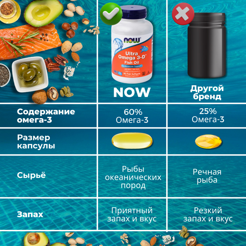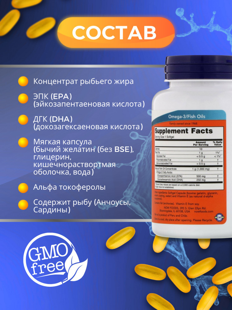 💳 Оплатить за товар можно при получении 🇰🇿 Есть бесплатная доставка по Казахстану 🎁 Копите бонусы с каждой покупки Омега-3 — группа полиненасыщенных жирных кислот (ПНЖК), которые защищают клеточные мембраны и внутренние органы человека от разрушения. Без данных соединений невозможна полноценная работа нервной, иммунной и сердечно-сосудистой систем, адекватный синтез тканевых гормонов, простагландинов, правильный метаболизм эссенциальных веществ. Кроме того, они подавляют воспалительные процессы, улучшают состояние суставов, борются с эмоциональными расстройствами, синдромом хронической усталости. Гелевые капсулы имеют энтеросолюбильное покрытие, что помогает контролировать общую проблему отрыжки, послевкусия и запаха рыбьего жира. |