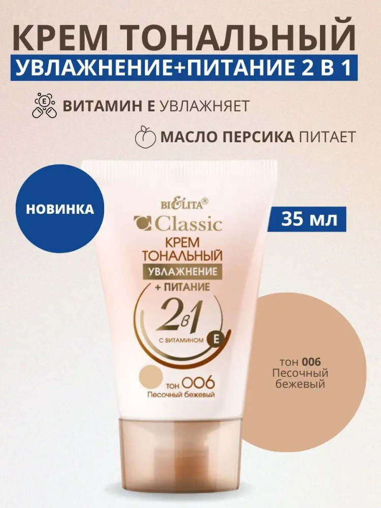 Bielita Крем тональный для лица с витамином Е, оттенок 006 Песочный бежевый