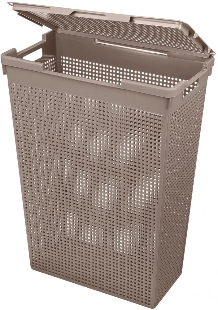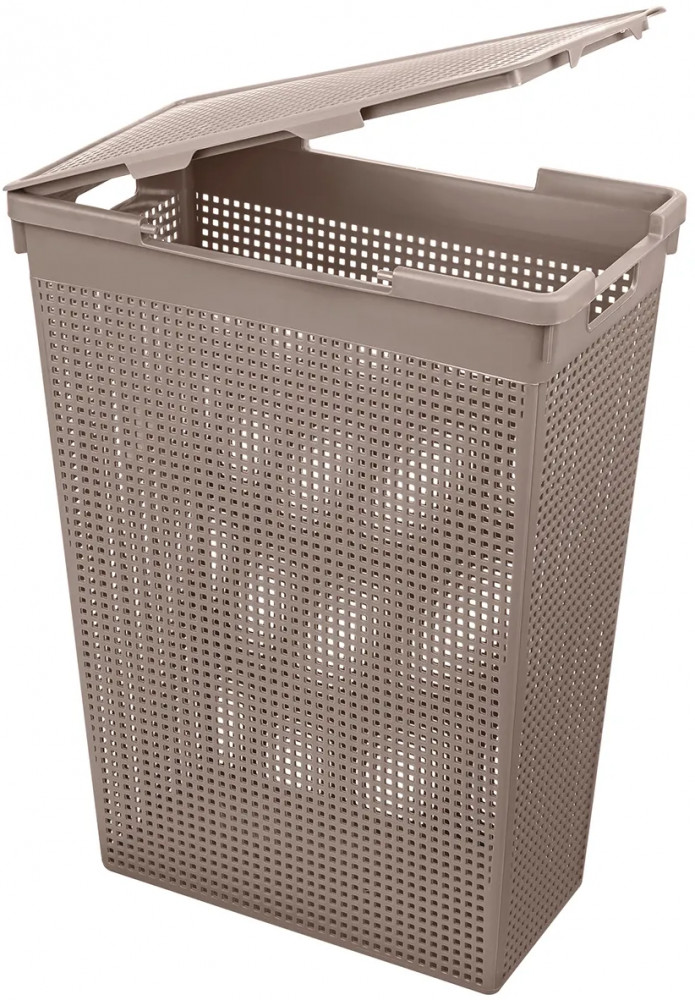 Классная корзина, крышку можно установить на любую сторону, как удобно. Корзинка сетчатая, не будет запаха затхлого белья.