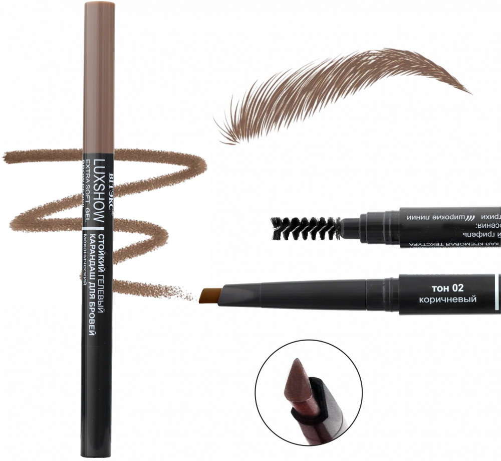 Вiтэкс Карандаш для бровей гелевый стойкий, оттенок 02 Коричневый