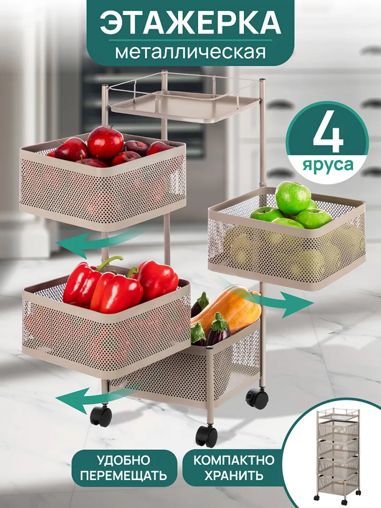 Этажерка четырехъярусная на колесиках | El Casa