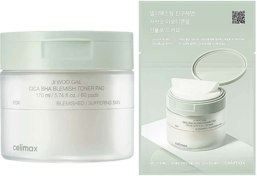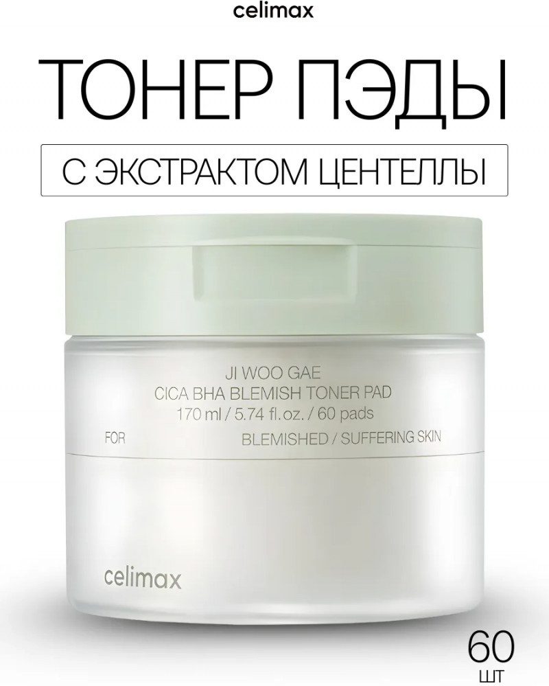 Celimax Пэды от воспалений для проблемной кожи лица «Ji Woo Gae Cica BHA Blemish Toner Pad»