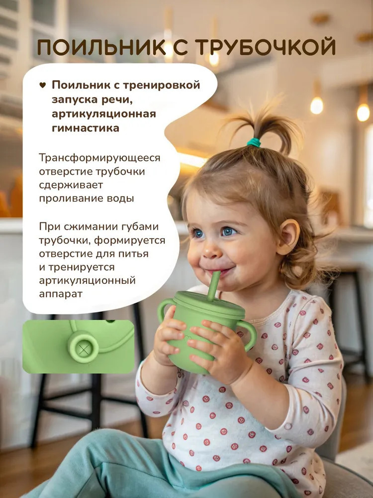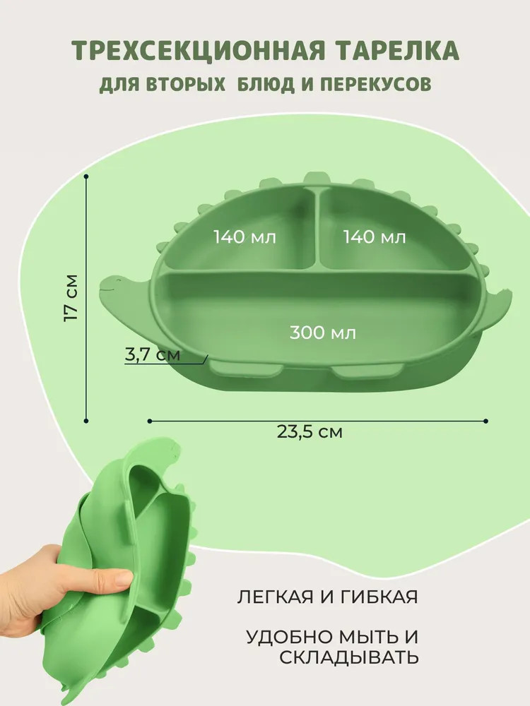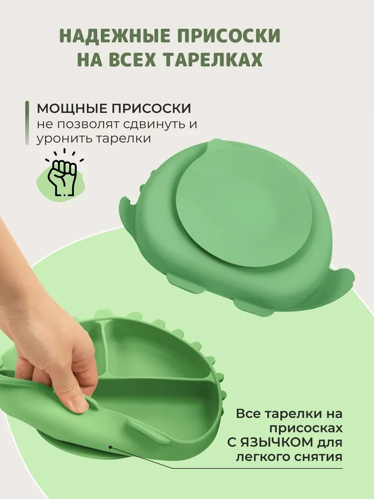 Детская посуда выполнена из качественных гипоаллергенных материалов. Нагрудник анатомической формы имеет регулировку на шее и карман для остатков пищи, который сохранит одежду ребенка чистой.
