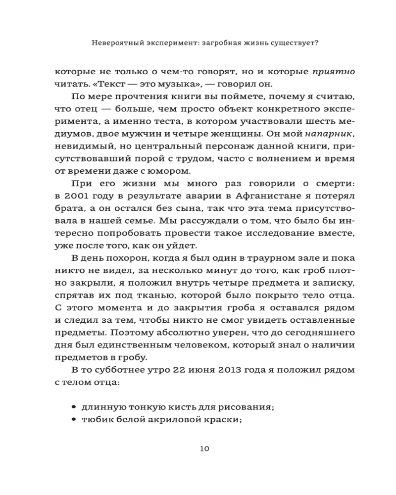 💳 Оплатить за товар можно при получении 🇰🇿 Есть бесплатная доставка по Казахстану 🎁 Копите бонусы с каждой покупки После смерти моего отца я положил в его гроб четыре предмета. Я никому не говорил об этом. Затем я обратился к медиумам, которые утверждают, что умеют общаться с мертвыми. Смогут ли они сказать, что это за предметы? Стефан Алликс провел эксперимент с шестью медиумами. Полученные результаты ошеломляют и подтверждают то, о чем свидетельствуют научные исследования: на сегодняшний день существование жизни после смерти является рациональной гипотезой. |