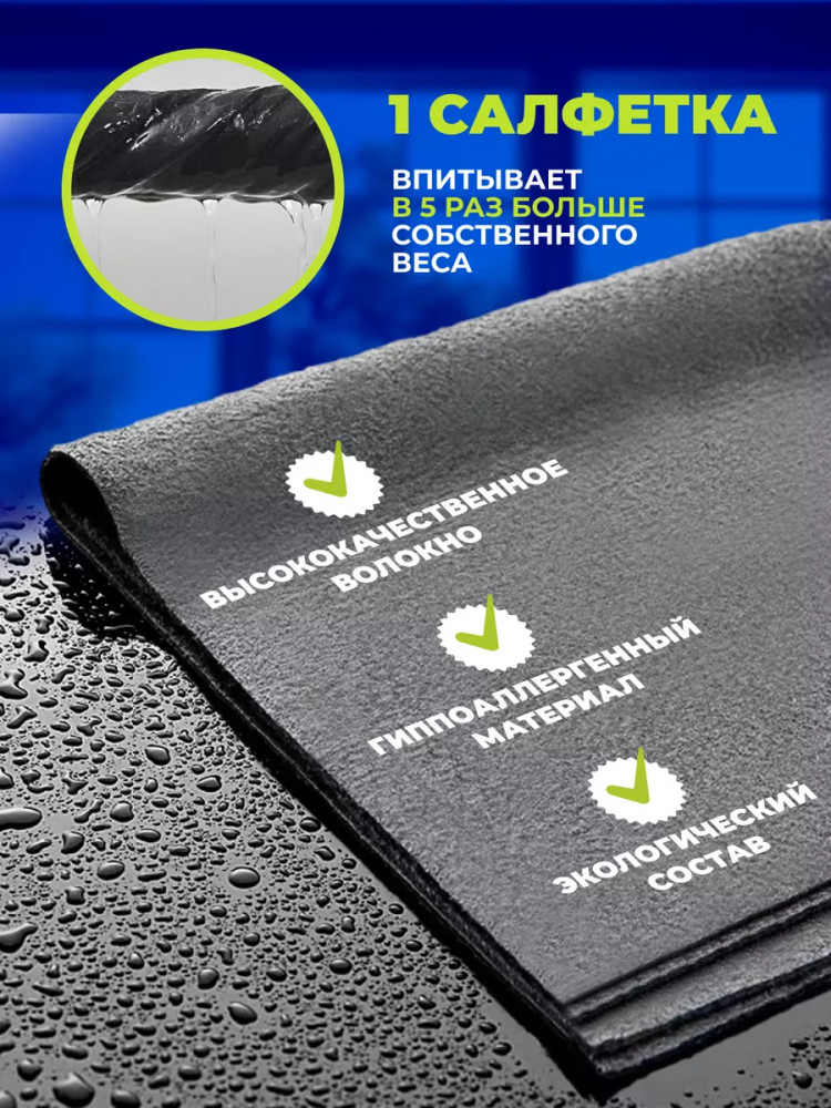 Мягкая, антибактериальная и гипоаллергенная ткань не теряет своих свойств после многократных стирок и быстро сохнет. Она подходит для чистки салона автомобиля, полировки фар, мойки стекол и кузова, как в домашних условиях, так и на автомойке.