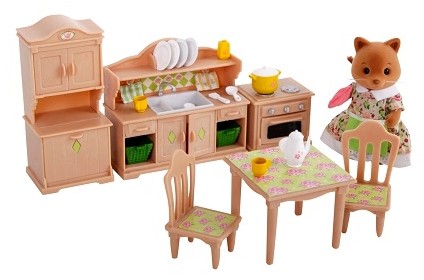 Для детей младшего школьного возраста отличная игрушка. Мебель выполнена из пластика, посуда из пластика, прочные детали. Детали мелкие, но хорошо выполнены. Младшему 4-х летнему и средней дочери 8-ми лет очень нравиться играть.