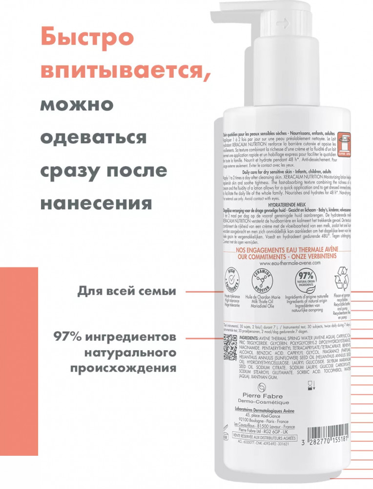 Avene Молочко для очень сухой кожи лица и тела легкое питательное «Moisturizing Lotion»