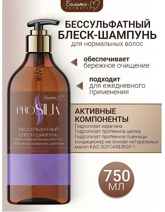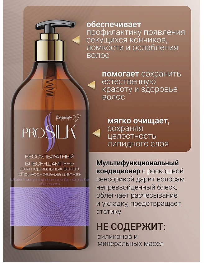 Белита-М Шампунь-блеск бессульфатный для нормальных волос «Прикосновение шелка»