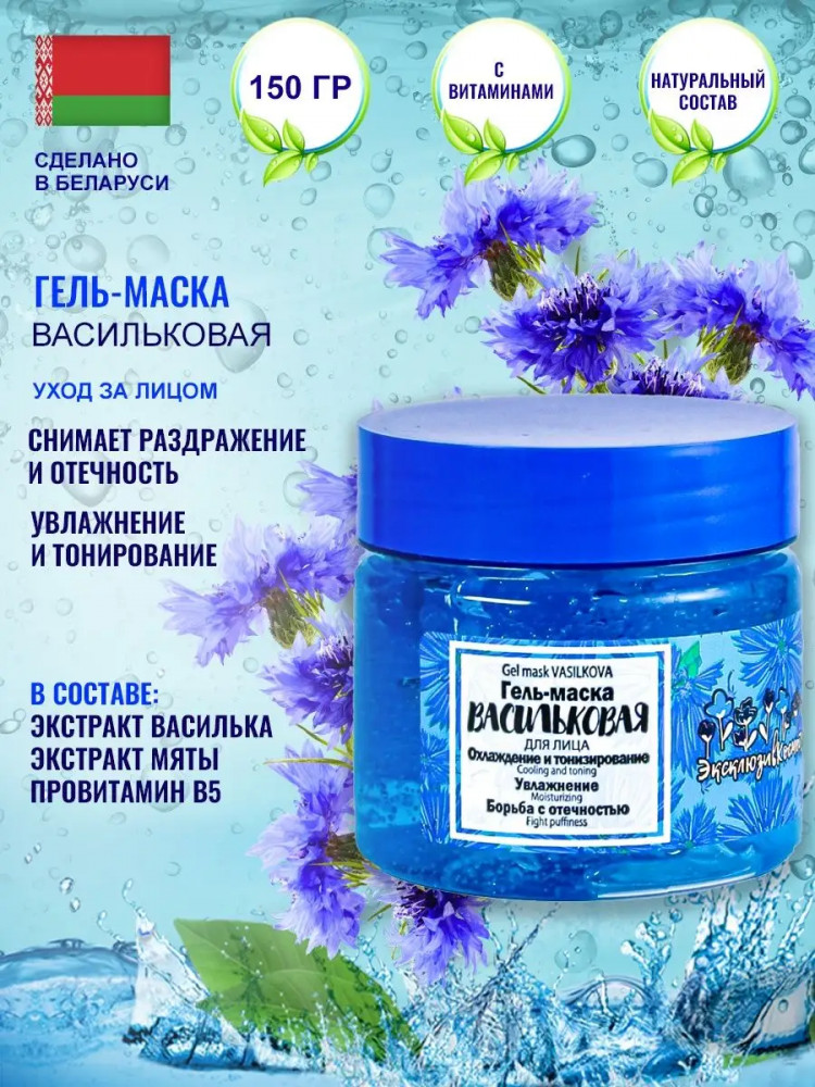 Эксклюзив Косметик-М Гель-маска для лица васильковая, охлаждение, тонизирование, увлажнение