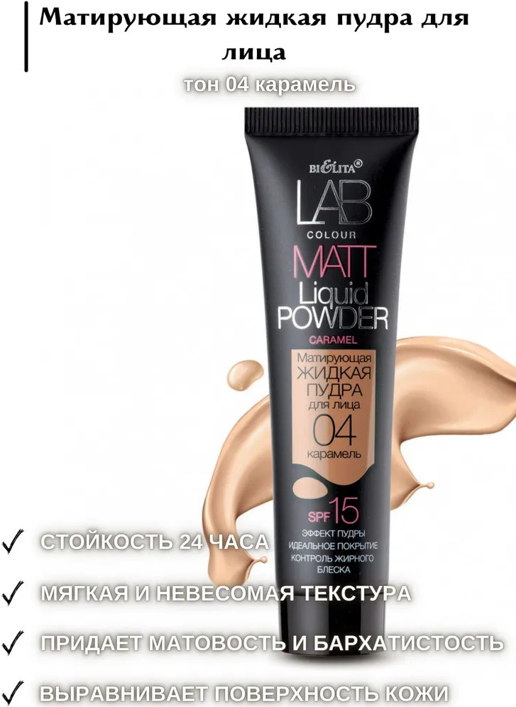 Belkosmex Пудра для лица жидкая матирующая «Matt liquid powder», оттенок 04 Карамель