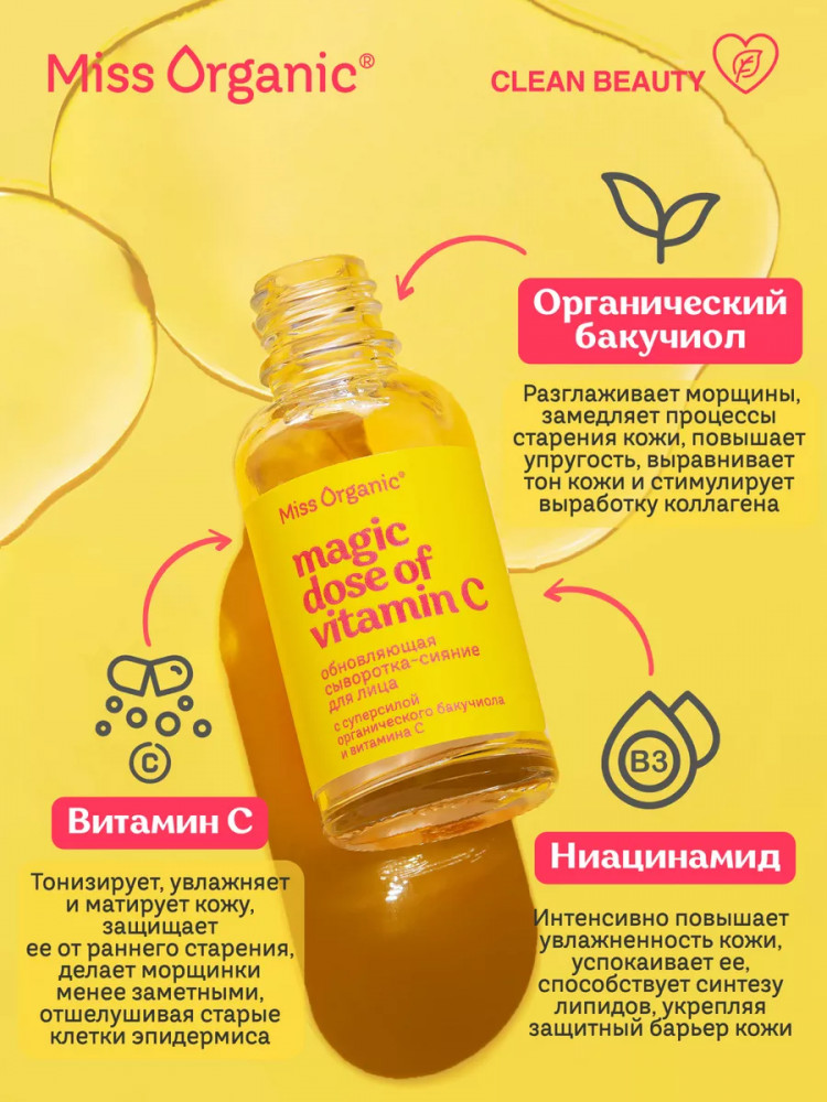 Miss Organic Сыворотка-сияние для лица обновляющая «Magic dose of vitamin C»