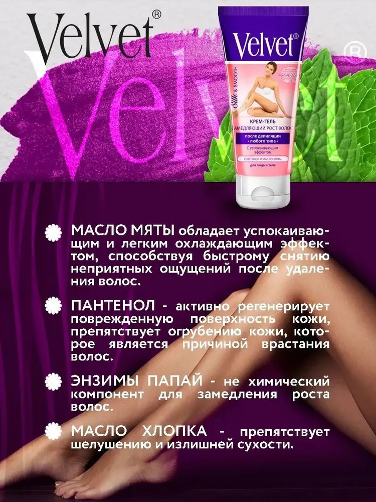 Velvet Крем-гель замедляющий рост волос после депиляции любого типа с успокаивающим эффектомВ данный момент этот товар отсутствует в продаже. Возможно, у нас найдется аналогичный или похожий товар здесь. Представляем вашему вниманию профессиональный крем-гель замедляющий рост волос, созданный для тех, кто ценит комфорт и безупречный результат после процедуры удаления волос. Благодаря уникальному составу, средство не только замедляет рост волос, но и обеспечивает комплексный уход за кожей. В основе формулы лежат натуральные компоненты, каждый из которых выполняет свою важную функцию. |