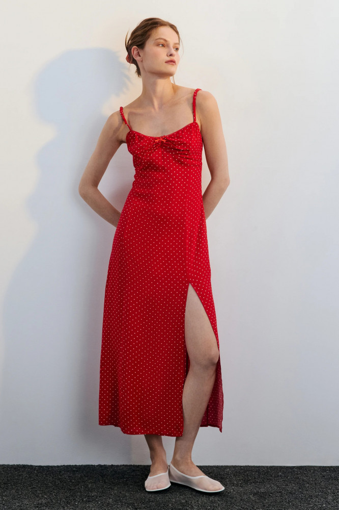 Соблазнительный летний сарафан на бретельках для стильных и женственных луков на каждый день или по особым поводам. Сочетай его с любой удобной обувью и любимыми аксессуарами и создавай привлекательные и утонченные образы на весну и лето. Носи платье отдельно или в составе многослойных образов. Это соблазнительное миди-платье с принтом станет основой праздничных и романтических образов на вечеринки, летние ивенты или морские прогулки. Универсальный вариант и для летних образов в офис с пиджаком, и для отпуска и долгих ночных прогулок.