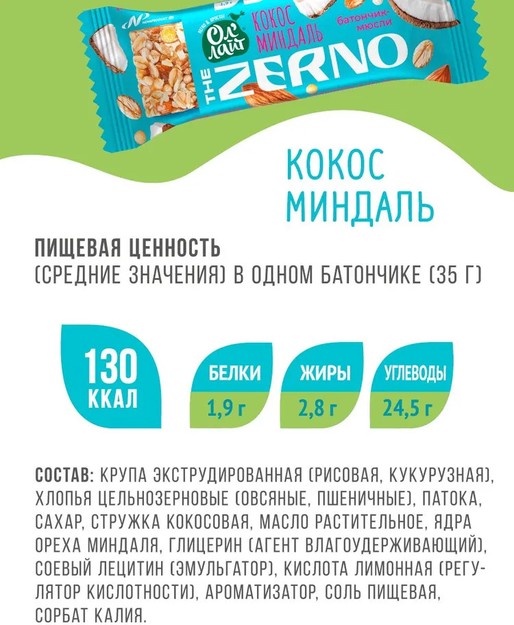 Ол'Лайт Батончик-мюсли «Кокос-миндаль»